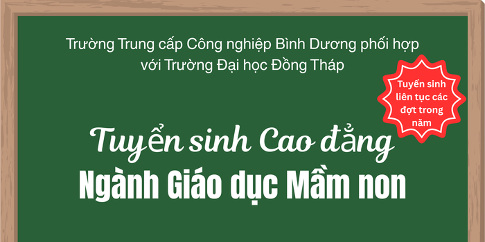 Trường Trung cấp Công nghiệp Bình Dương phối hợp với Trường Đại học Đồng Tháp thông báo tuyển sinh ngành Cao đẳng Giáo dục Mầm non năm 2025, cụ thể như sau:
