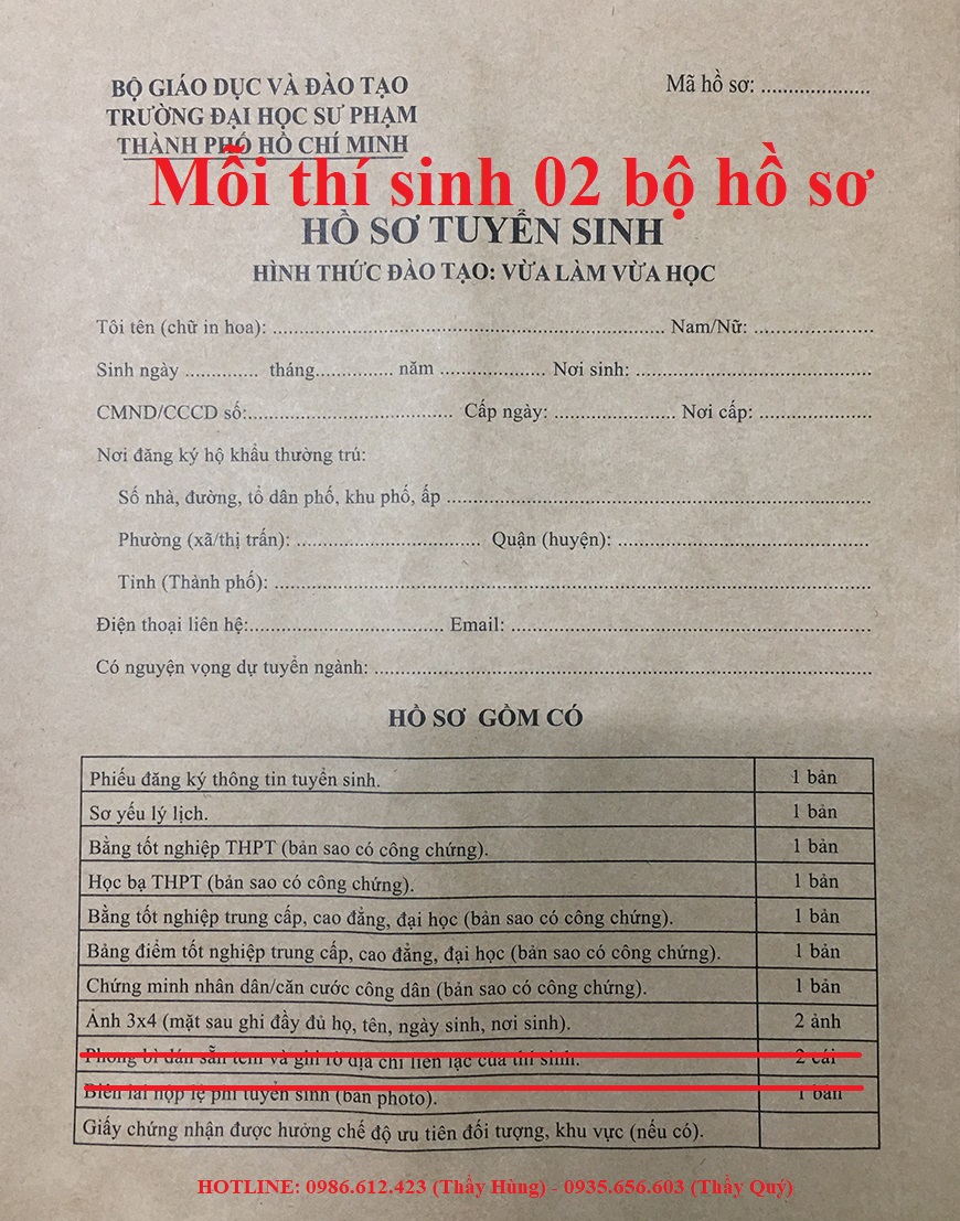 - 02 Phiếu đăng ký thông tin tuyển sinh (có sẵn trong hồ sơ, không cần công chứng)