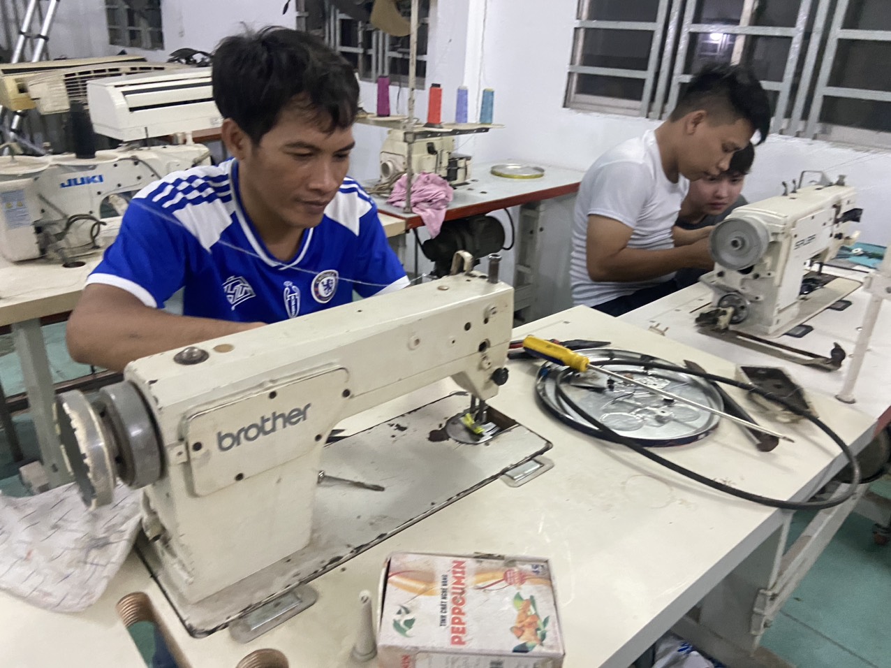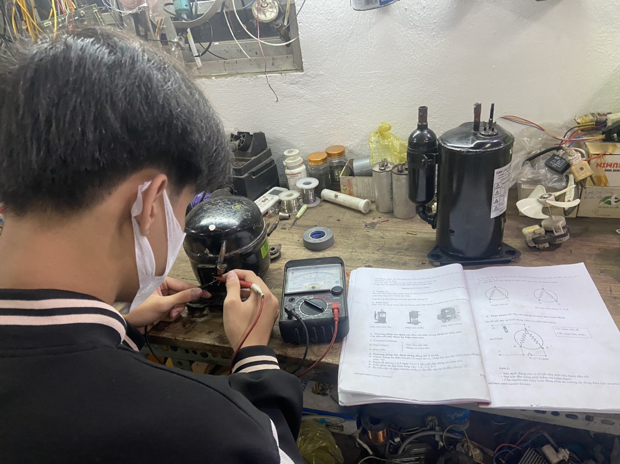 (Giờ học bảo trì máy may, điện lạnh, điện công nghiệp)