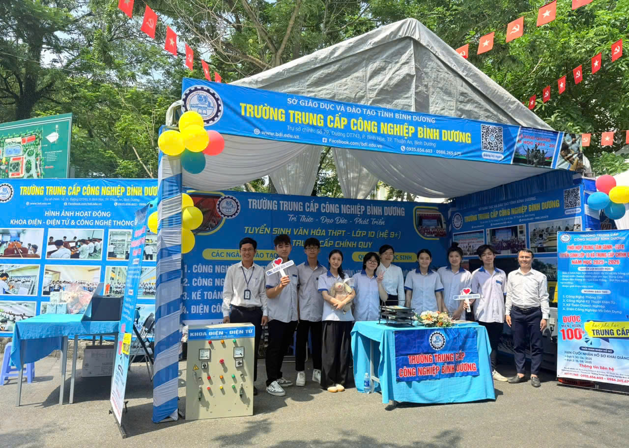 Trong khuôn khổ Ngày hội, Trường Trung cấp Công nghiệp Bình Dương đã góp mặt với một gian hàng tư vấn và trải nghiệm ngành nghề