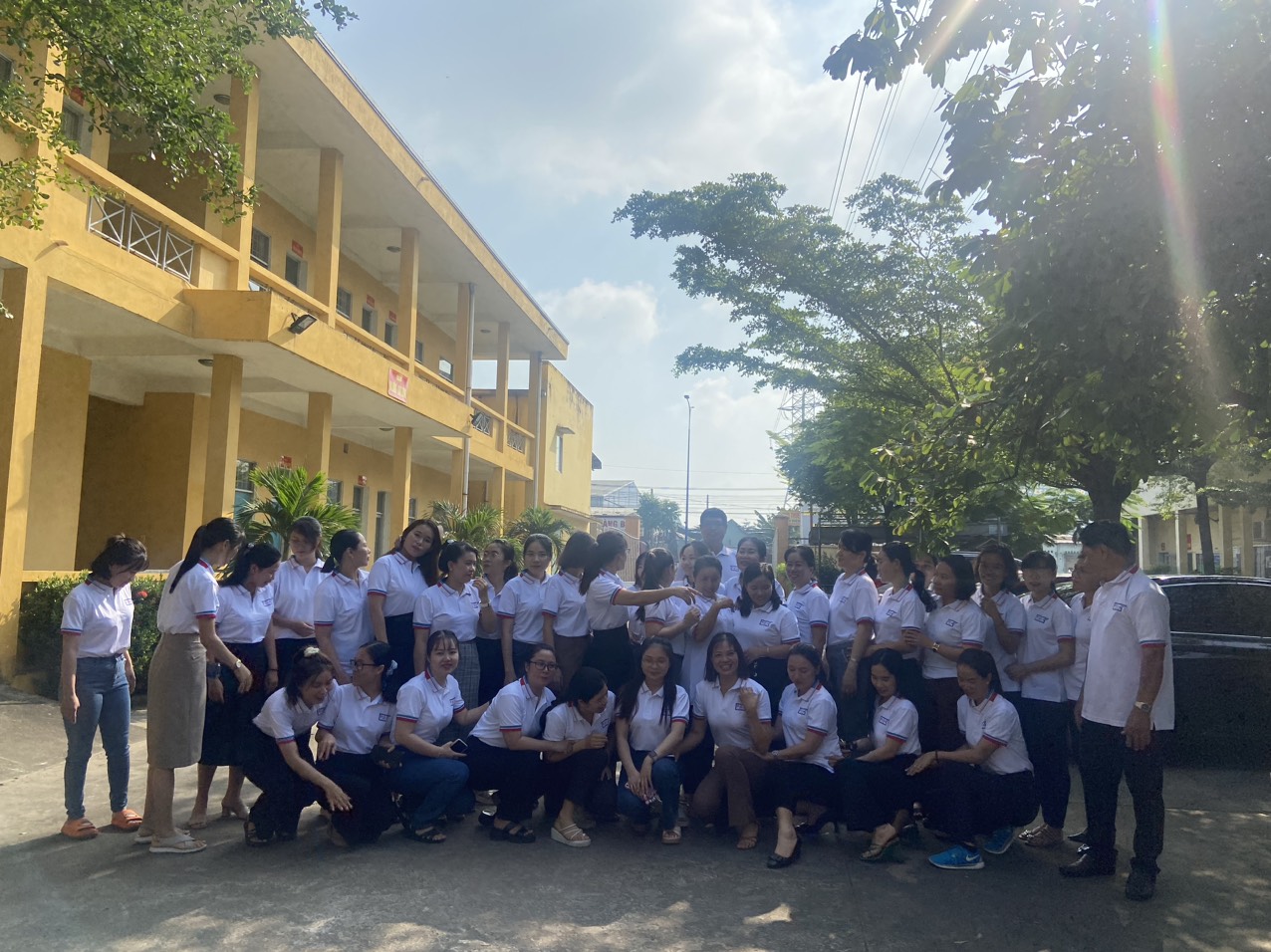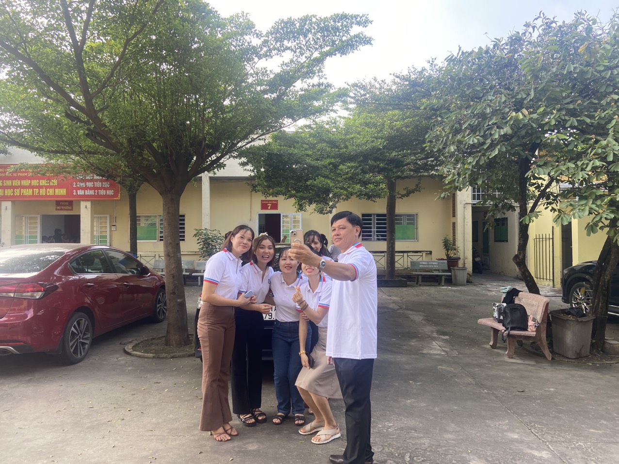 Các bạn K2- Văn bằng 2 Tiểu học chụp ảnh kỉ niệm tại trường