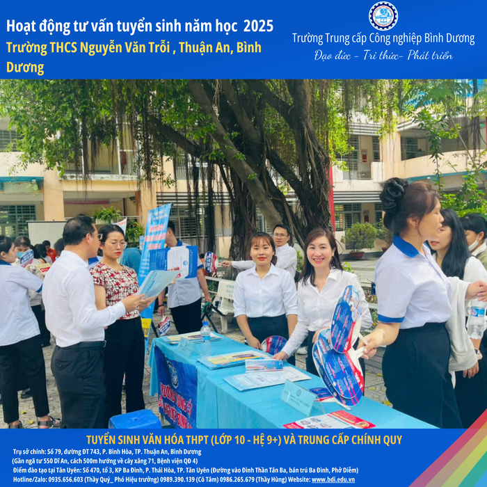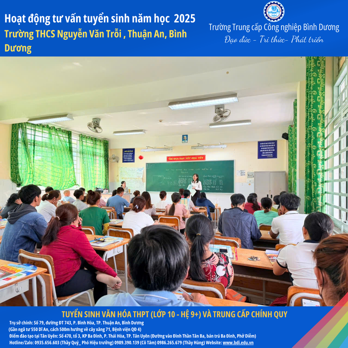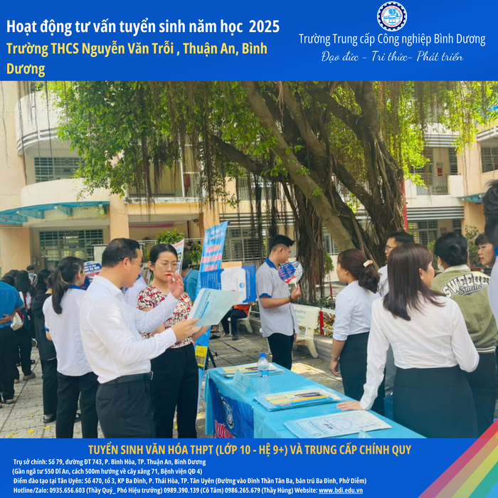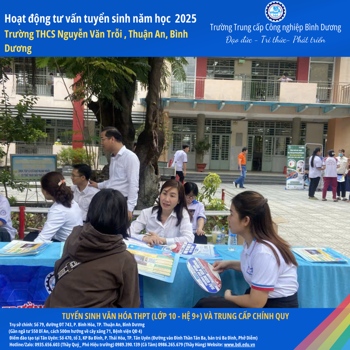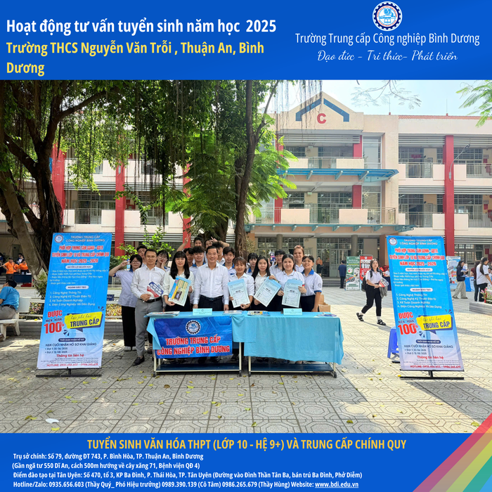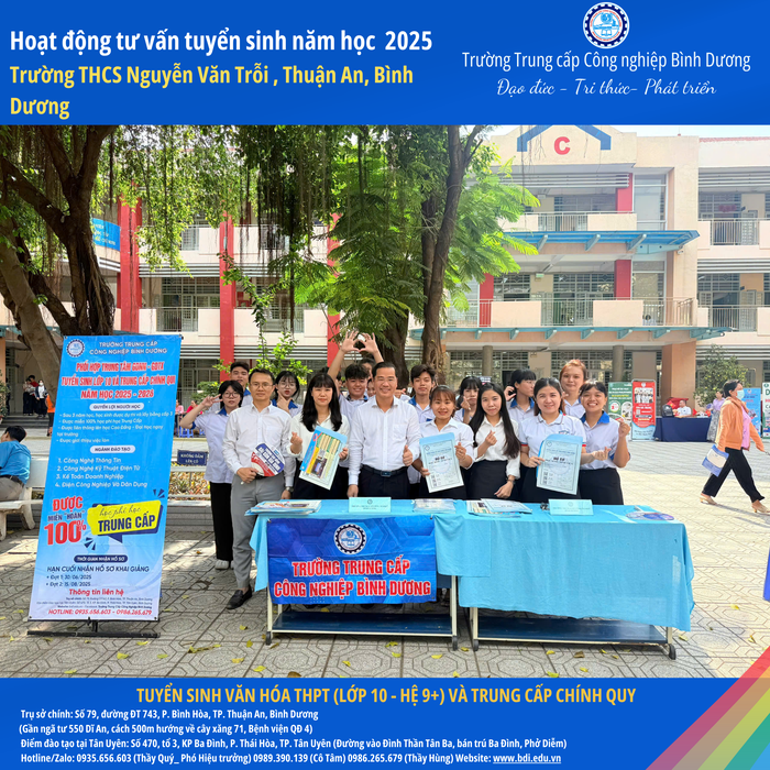 Trường Trung cấp Công nghiệp Bình Dương xin gửi lời cảm ơn chân thành đến Ban Giám hiệu, quý thầy cô và quý phụ huynh học sinh Trường THCS Nguyễn Văn Trỗi đã nhiệt tình ủng hộ và chào đón đoàn tư vấn tuyển sinh của nhà trường.