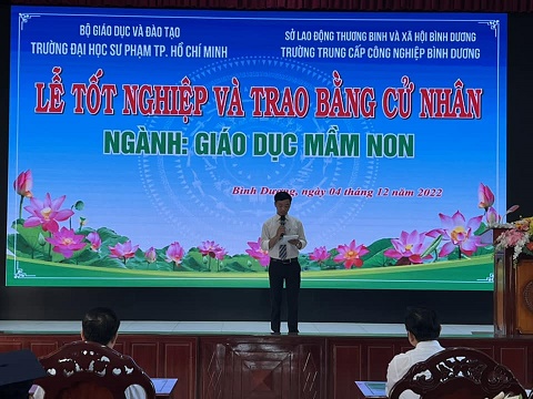 Ngày 04/12/2022 Trường Trung cấp Công nghiệp Bình Dương phối hợp cùng Trường ĐH Sư phạm TP.Hồ Chí Minh long trọng tổ chức trao bằng tốt nghiệp cho sinh viên hệ Đại Học