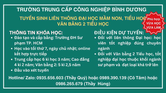 0989 390 139 (Cô Tâm); 0986 265 679 (Thầy Hùng)