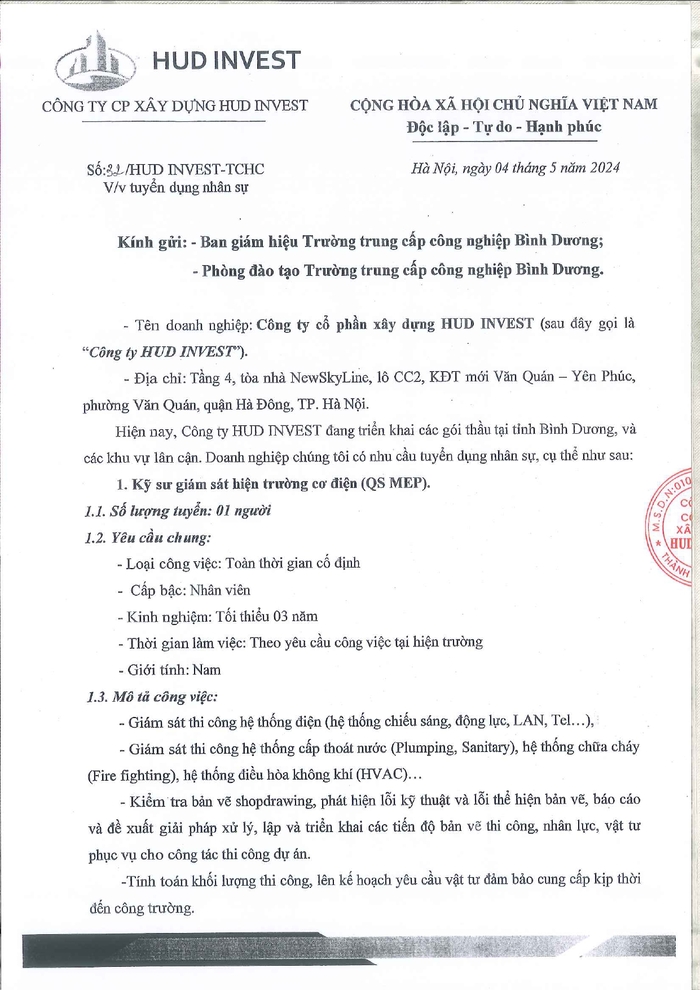 3. Thời gian làm việc: từ thứ 2 đến thứ 7